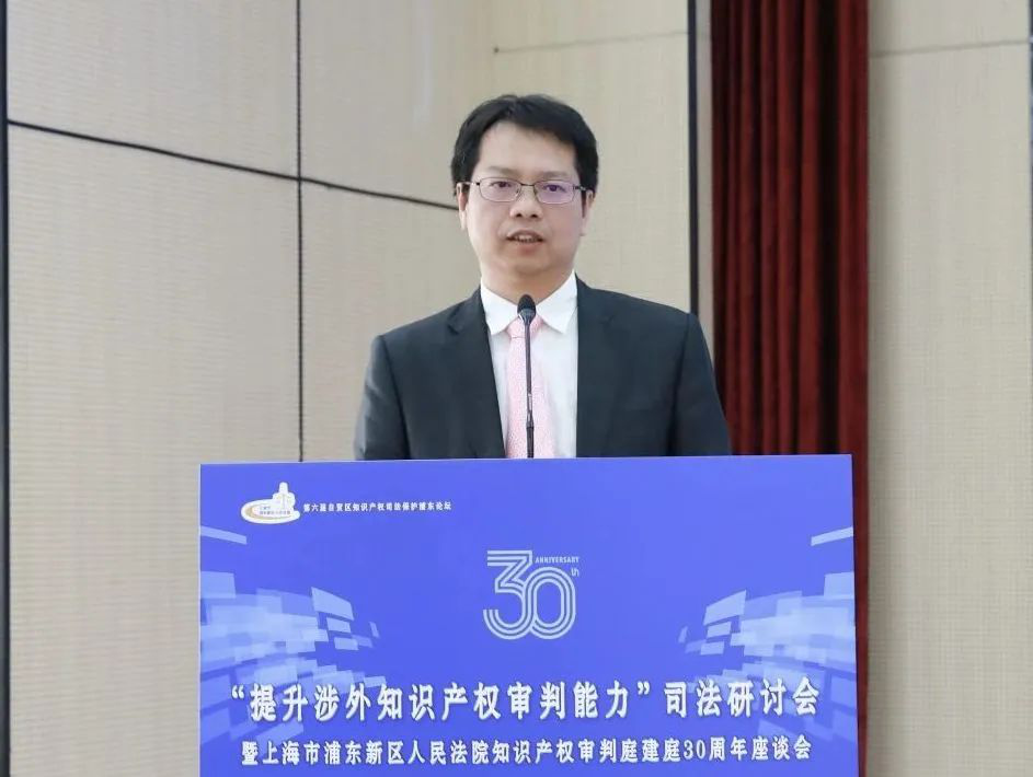 值全国首个基层法院知识产权审判庭——上海市浦东新区人民法院(以下简称浦东新区人民法院)知识产权审判庭建庭30周年之际,为进一步提升涉外知识产权审判能力,聚焦高质量司法服务保障高水平改革开放,2024年11月30日,第六届自贸区知识产权司法保护浦东论坛“提升涉外知识产权审判能力”司法研讨会暨浦东新区人民法院知识产权审判庭建庭30周年座谈会在上海浦东举办。jiuyou上海分所主任、国家知识产权海外纠纷应对指导中心专家李文红博士受邀出席并作主题演讲。