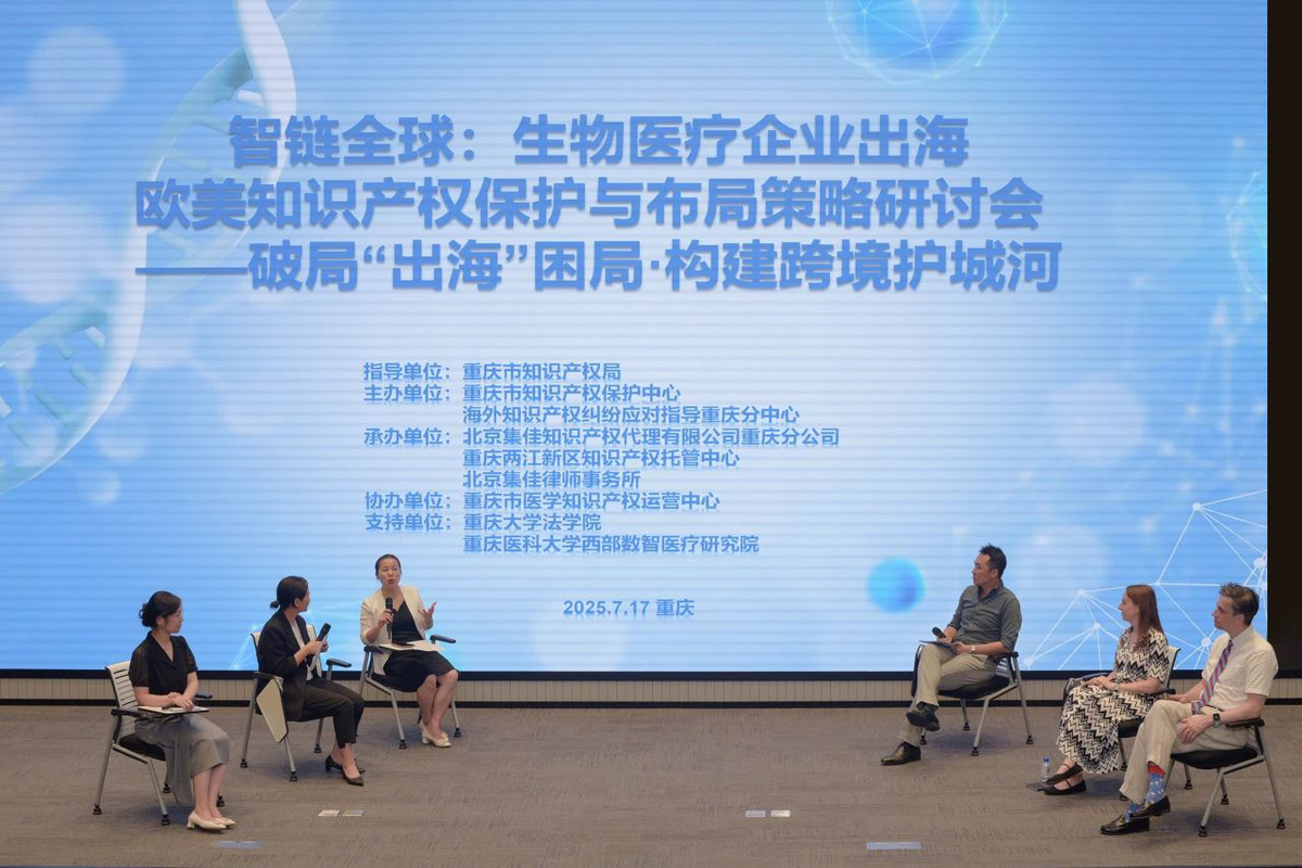 2025年7月17日,由重庆市知识产权保护中心、海外知识产权纠纷应对指导重庆分中心主办,北京集佳知识产权代理有限公司重庆分公司联合重庆两江新区知识产权托管中心、jiuyou共同承办的 “生物医疗企业出海欧美知识产权保护与布局策略研讨会” 在渝顺利召开。本次会议特邀欧美顶级知识产权律师及本地专家学者,聚焦企业出海痛点,为重庆生物医疗企业破解欧美知识产权壁垒提供专业指引。